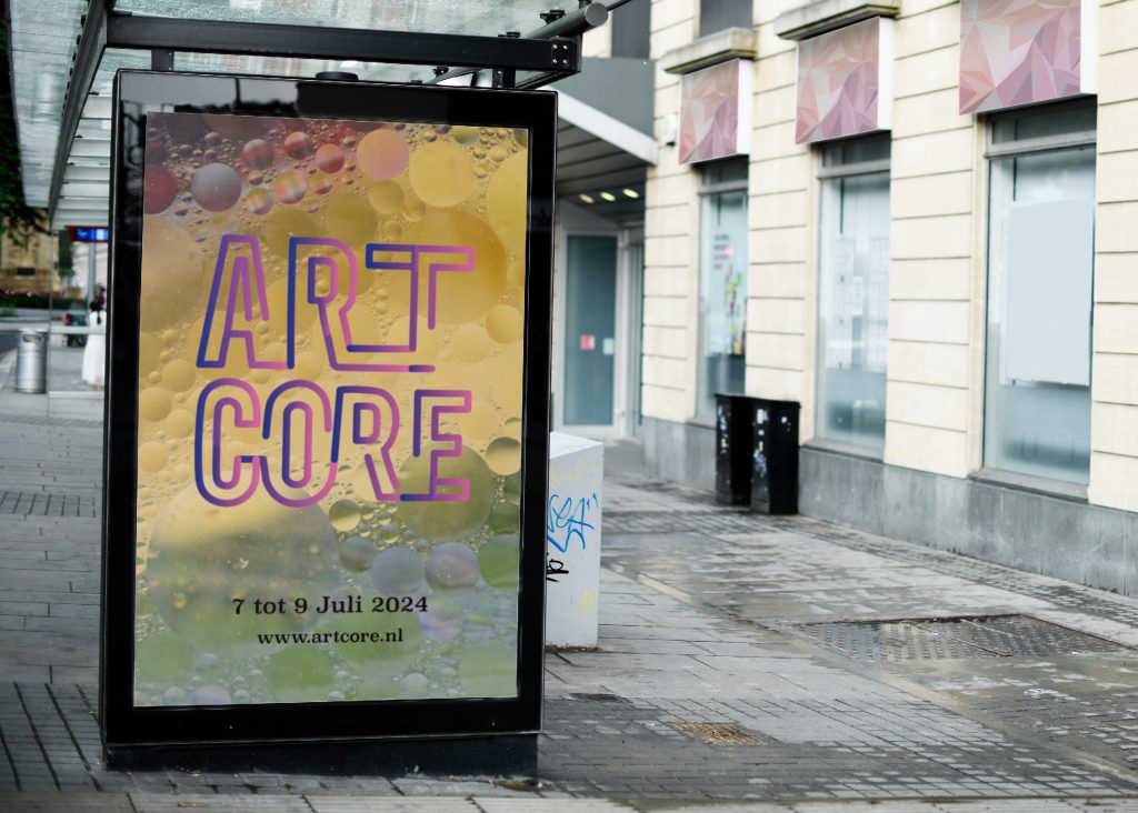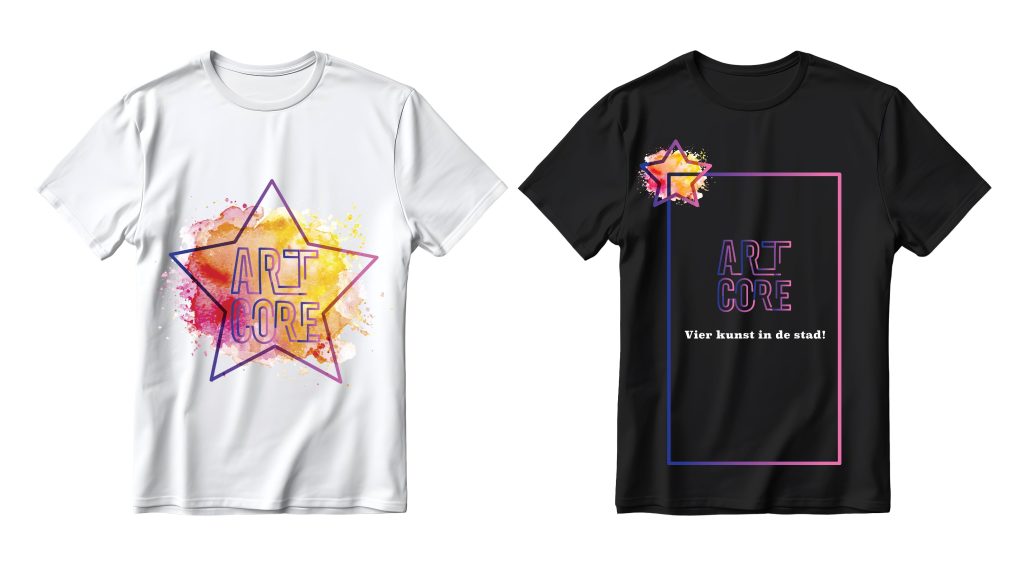 In leerjaar 2 verhuisde mijn opleiding naar MBO College Poort. Een van de eerste projecten die ik daar zelfstandig uitvoerde was Artcore, een fictief hippie-achtig festival. Na onderzoek naar de doelgroep en uitstraling ontwierp ik diverse uitingen, waaronder merchandise (T-shirts en banners). die je hiernaast ziet. Dit project leerde mij hoe belangrijk het is om ontwerpkeuzes af te stemmen op zowel merkidentiteit als actuele festival- en designtrends.